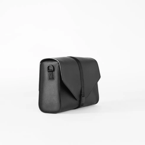 Borsa laterale per moto in stile minimal e funzionale realizzata interamente in CUMMIS® spessore 2,6 mm accoppiato con tessuto interno 100% cotone colore nero.